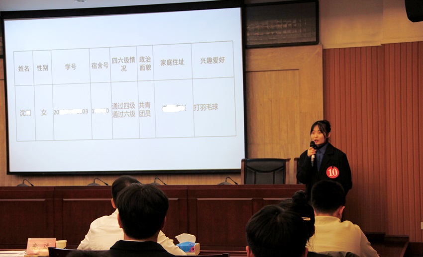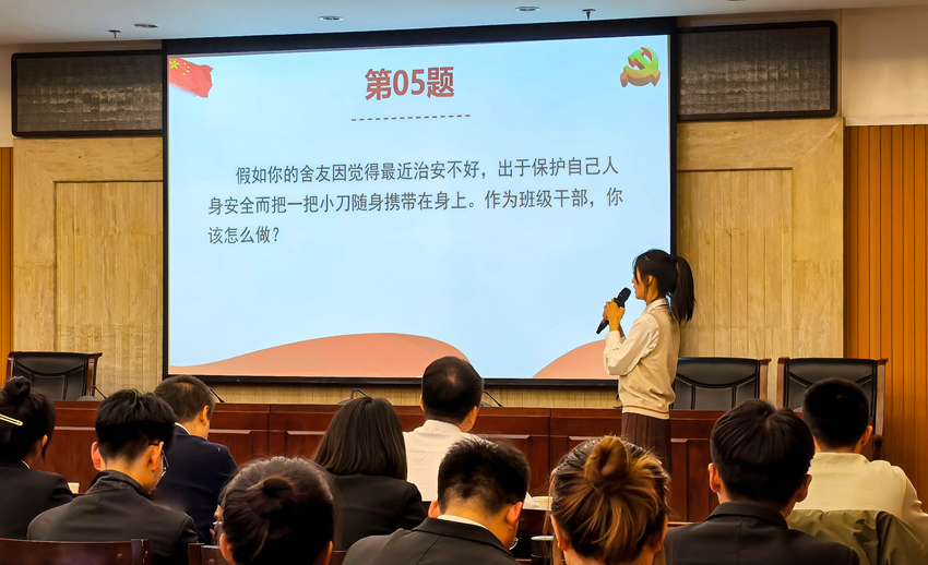 本次活動主要分為班級干部素質(zhì)能力大賽決賽和班級建設(shè)大賽匯報展示兩大部分。首先進行的是班級干部素質(zhì)能力大賽決賽,包含“班情熟知”和“案例分析”兩個環(huán)節(jié),分別考察班級干部對班級每位成員基本情況的了解程度和班級干部在面對班級日常管理、穩(wěn)定安全、疫情防控、班風(fēng)學(xué)風(fēng)、同學(xué)關(guān)系等問題時的思路、原則、方法和啟示。