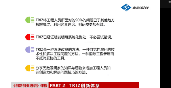本次課程由粵嵌科技全國(guó)運(yùn)營(yíng)項(xiàng)目項(xiàng)目經(jīng)理蔡佳祥主講,他從“傳統(tǒng)創(chuàng)新方法、TRIZ創(chuàng)新體系、TRIZ發(fā)明與創(chuàng)新規(guī)則、TRIZ原理與方法”四個(gè)方面,“產(chǎn)品設(shè)計(jì)及生產(chǎn)”兩個(gè)維度對(duì)創(chuàng)新思維進(jìn)行講解,并在傳統(tǒng)創(chuàng)新理論的基礎(chǔ)上對(duì)TRIZ理論進(jìn)行講解和闡述。
