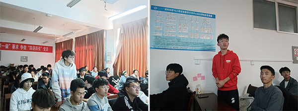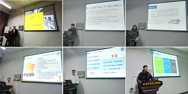 材物1901班陳瀟瀟從學(xué)習(xí)時間安排、不同時間段的學(xué)習(xí)計劃等方面,介紹了高效學(xué)習(xí)方法,并向所有班委同學(xué)傳授了兼顧學(xué)習(xí)和班級管理工作的寶貴經(jīng)驗(yàn),為班委明確學(xué)習(xí)和工作目標(biāo),樹立了良好的榜樣。材物1801班李思瀾現(xiàn)已保研成功,她以自己的親身經(jīng)歷為能材21級學(xué)生介紹了考研和保研的經(jīng)驗(yàn),并強(qiáng)調(diào)大學(xué)學(xué)習(xí)中積極參加競賽和科研項(xiàng)目的重要性。材物1801班胡騰介紹了自己的學(xué)習(xí)經(jīng)歷,提醒同學(xué)們要珍惜時間,把握當(dāng)下,強(qiáng)化自我管理能力,為自己的夢想去拼搏。