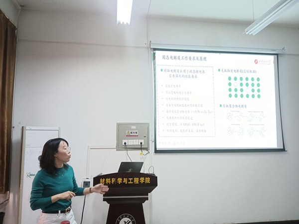 接下來,畢佳穎老師從鋰離子電池的發(fā)展和突出問題入手,指出發(fā)展固態(tài)鋰電池的重要意義。畢老師從固態(tài)鋰電池的概述、研究背景、面臨的挑戰(zhàn)和固態(tài)鋰電池的技術(shù)展望等四個方面,深入淺出地介紹了固態(tài)鋰電池安全性以及科研工作者在此項(xiàng)工作中所做的卓越研究。在講到固態(tài)鋰電池的應(yīng)用前景時,畢老師通過我國深海設(shè)備的實(shí)例出發(fā),介紹了固態(tài)鋰電池在高水壓環(huán)境中的突出性能。學(xué)生們根據(jù)畢老師的精彩報告,踴躍發(fā)言提問,活動現(xiàn)場氣氛熱烈。本次系列講座增強(qiáng)了學(xué)生的專業(yè)認(rèn)同感和自豪感,同時激發(fā)了學(xué)生努力學(xué)習(xí)專業(yè)知識,投身國家能源發(fā)展大潮的熱情。