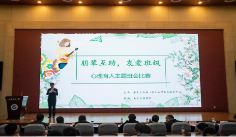 為進一步開展大學(xué)生心理健康教育工作,發(fā)揮學(xué)生心理骨干作用,夯實我校五級心理危機預(yù)警防控暨心理健康教育體系,提升心理育人質(zhì)量,1125日晚,由學(xué)生工作部(學(xué)生心理成長指導(dǎo)中心)主辦、電子工程學(xué)院承辦的2021“朋輩互助,友愛班級”心理育人主題班會比賽在鄠邑校區(qū)弘石報告廳舉行。決賽共有9支代表隊參賽,相關(guān)部門、院系負(fù)責(zé)人擔(dān)任評委,150余名師生觀看了本場比賽。
