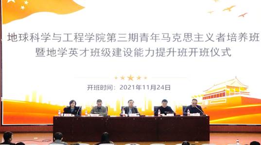 地球科學與工程學院第三期青年馬克思主義者培養(yǎng)班暨“地學英才”班級建設(shè)能力提升班開班儀式于11月24日下午在鄠邑校區(qū)弘石報告廳順利舉辦。學院黨委書記馬行天、校學工部副部長龐秉謙、校團委書記何國強、學院黨委副書記王瑩、學院全體輔導(dǎo)員及培訓(xùn)班全體學員參加了開班儀式。儀式由學院學工辦主任李化杰主持。