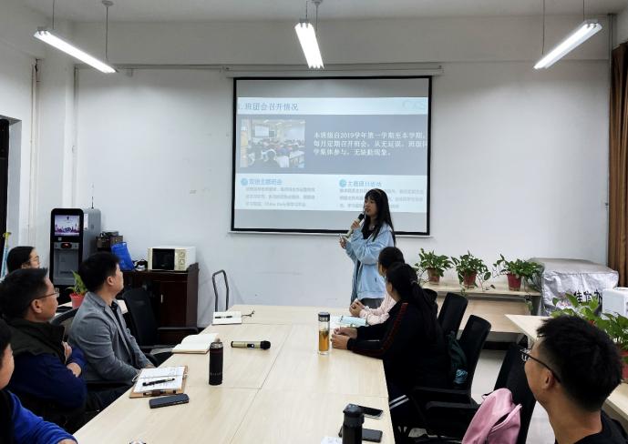為強(qiáng)化示范引領(lǐng),學(xué)院組織2019級(jí)本科班委工作交流匯報(bào)會(huì)。2019級(jí)各本科班級(jí)分別從班級(jí)基本概況、思想建設(shè)、組織建設(shè)、學(xué)風(fēng)建設(shè)、學(xué)生工作、第二課堂開展情況、下一步工作計(jì)劃等方面進(jìn)行了全面匯報(bào)和經(jīng)驗(yàn)分享,為低年級(jí)同學(xué)進(jìn)行了生動(dòng)全面地班級(jí)風(fēng)采展示。院黨委副書記王業(yè)青要求全體班委充分認(rèn)識(shí)班級(jí)建設(shè)的重要意義,積極發(fā)揮主觀能動(dòng)性,團(tuán)結(jié)帶領(lǐng)班級(jí)同學(xué)不斷推進(jìn)班級(jí)建設(shè);全體同學(xué)充分發(fā)揮主人翁精神,用個(gè)體貢獻(xiàn)推動(dòng)班級(jí)建設(shè),用個(gè)人成績(jī)支撐班級(jí)發(fā)展,努力打造成績(jī)優(yōu)良、作風(fēng)優(yōu)良、素質(zhì)過硬的優(yōu)秀班級(jí)。