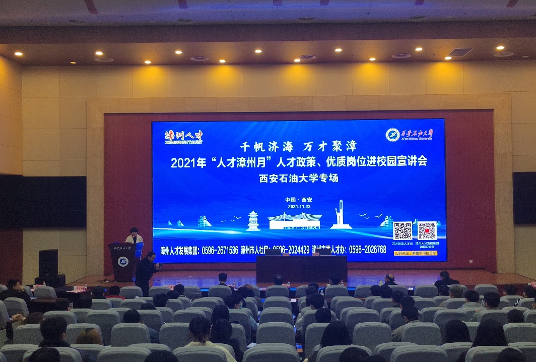 11月22日,漳州市科學(xué)技術(shù)局黨組書記、局長林鷺一行6人代表漳州市人才辦來我校舉行“人才漳州月”西安石油大學(xué)專場宣講會并簽訂校地合作協(xié)議。會議在鄠邑校區(qū)弘石報告廳舉行。就業(yè)指導(dǎo)中心全體工作人員,全校各院系畢業(yè)生代表參加會議。