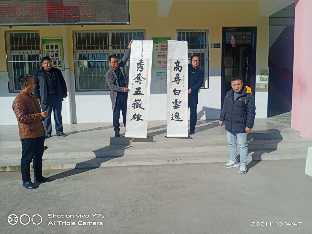 弘揚(yáng)優(yōu)秀傳統(tǒng)文化是鄉(xiāng)村振興的必然要求,實施鄉(xiāng)村振興戰(zhàn)略,就要深入到田間地頭,傳播農(nóng)耕文化蘊(yùn)含的優(yōu)秀思想觀念、人文精神、道德規(guī)范,提高人民群眾的道德水準(zhǔn)和文明程度,大力倡導(dǎo)社會主義核心價值觀,激發(fā)勞動人民的創(chuàng)業(yè)熱情和創(chuàng)新活力,筑牢人民共同團(tuán)結(jié)奮進(jìn)的思想基礎(chǔ)。料峭冬日,暖意融融,1110日,西安石油大學(xué)工會袁玎主席、劉陜軍副主席帶領(lǐng)工會同志先后前往永壽縣馬坊鎮(zhèn)宋家園子村和馬坊中學(xué)開展書法藝術(shù)進(jìn)農(nóng)家和書法藝術(shù)進(jìn)校園活動。
