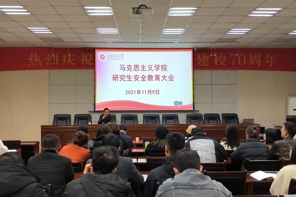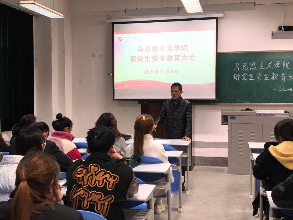 為貫徹落實學(xué)校安全工作會議精神,加強對研究生的日常管理,提高學(xué)生安全防范意識,引導(dǎo)學(xué)生樹立規(guī)矩意識,營造健康、穩(wěn)定的校園氛圍,馬克思主義學(xué)院分別于11月8日在鄠邑校區(qū),11月9日在雁塔校區(qū)召開了研究生安全教育大會。