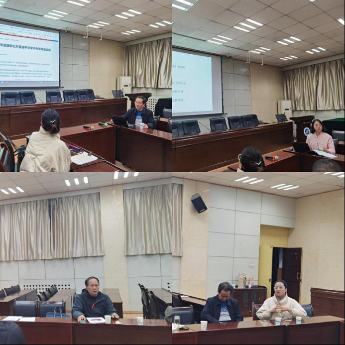 接著,劉副院長對(duì)2022年度國家社科基金項(xiàng)目做申報(bào)動(dòng)員及重點(diǎn)部署。她指出,國家社科基金項(xiàng)目申報(bào)關(guān)乎學(xué)院的學(xué)科發(fā)展與學(xué)位點(diǎn)建設(shè),對(duì)教師及團(tuán)隊(duì)來說也是一個(gè)磨練、學(xué)習(xí)、積累經(jīng)驗(yàn)的過程,對(duì)提升科研能力大有裨益,要求大家盡快結(jié)合學(xué)科高頻關(guān)鍵詞及熱點(diǎn)問題,著力在選題上下功夫,明確研究方向,做好前期準(zhǔn)備工作,并認(rèn)真學(xué)習(xí)申報(bào)指南,反復(fù)打磨申報(bào)書,切實(shí)提高申報(bào)質(zhì)量。同時(shí),劉副院長表示,學(xué)院將繼續(xù)以國家社科申報(bào)工作為抓手,全面支持教師開展科研工作,提升科研能力,在項(xiàng)目申報(bào)管理中充分發(fā)揮指導(dǎo)作用,聘請(qǐng)校內(nèi)外專家開設(shè)相關(guān)講座,一對(duì)一指導(dǎo)申報(bào)書的撰寫和修改,進(jìn)一步提高申報(bào)書質(zhì)量。