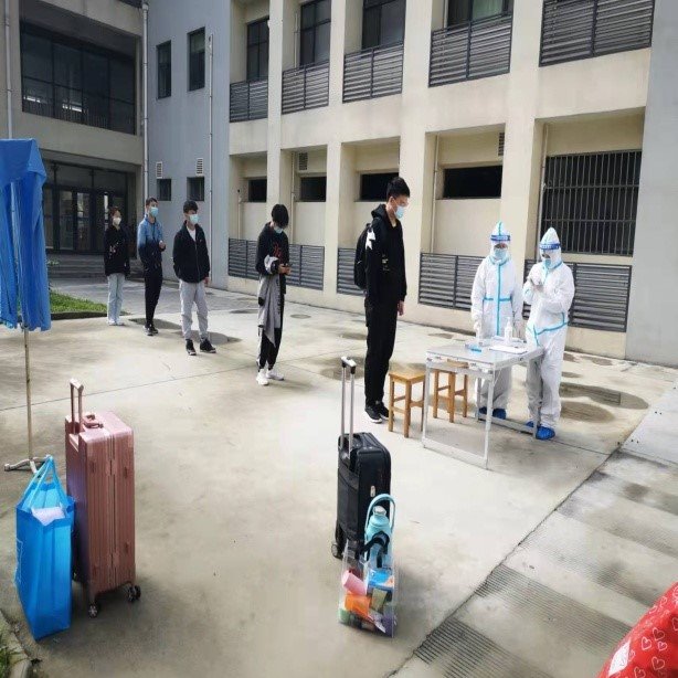二是用心服務(wù),做好兩校區(qū)集中隔離區(qū)域的醫(yī)療服務(wù)管理工作。疫情發(fā)生以來,校醫(yī)院負(fù)責(zé)的兩校區(qū)隔離區(qū)域一直處于運(yùn)轉(zhuǎn)啟用狀態(tài),主要接收從中高風(fēng)險(xiǎn)地區(qū)返校的師生或密接人員的隔離管理,高峰時(shí)段入住人數(shù)超過120多人。職責(zé)所在,使命所然,校醫(yī)院在兩校區(qū)隔離室安排專門醫(yī)務(wù)人員,成立后勤、保衛(wèi)人員在內(nèi)的工作專班,連續(xù)無休息堅(jiān)持工作,保證集中隔離觀察點(diǎn)24小時(shí)安全有序運(yùn)轉(zhuǎn)。在隔離區(qū),管理人員嚴(yán)格實(shí)行封閉式管理,除了做好健康監(jiān)測(cè)、醫(yī)療服務(wù)、核酸檢測(cè)、處理突發(fā)醫(yī)學(xué)事件和環(huán)境消毒等日常工作,更像一個(gè)24小時(shí)醫(yī)療后勤管家,貼心、周到地為隔離觀察期間的同學(xué)們提供溫馨的保障服務(wù)。大多數(shù)隔離觀察人員剛被隔離時(shí),或多或少都心存顧慮,但在隔離點(diǎn)工作人員的精準(zhǔn)管理和精細(xì)服務(wù)下,均放下顧慮,安心隔離,讓同學(xué)們感受到了家人般的溫暖。每到解除健康觀察,臨別時(shí)總有同學(xué)說一句辛苦,道一聲感謝。