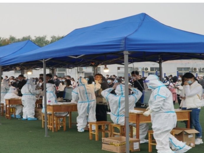 三是聞令而動(dòng),全力投入兩校區(qū)全員和重點(diǎn)人群的核酸采集等有關(guān)工作。在核酸檢測(cè)工作中,校醫(yī)院承擔(dān)著雁塔校區(qū)全員核酸檢測(cè)的采樣、鄠邑校區(qū)全員核酸檢測(cè)的身份核驗(yàn)及部分特殊人群的采樣工作等任務(wù)。每次在接到關(guān)于開展全員核酸檢測(cè)的緊急通知后,校醫(yī)院與時(shí)間賽跑,從布置場(chǎng)地、準(zhǔn)備設(shè)備物資、組建核酸檢測(cè)采樣隊(duì),做到了反應(yīng)迅速,及時(shí)有序到位。采集實(shí)施過程中,校醫(yī)院醫(yī)護(hù)人員嚴(yán)格落實(shí)個(gè)人防護(hù)措施,采樣操作規(guī)范,確保了樣本質(zhì)量。截至目前,校醫(yī)院共派出核酸采樣醫(yī)務(wù)人員200余人次,累計(jì)采集師生樣本近50000多人份,重點(diǎn)人群500余人份。
