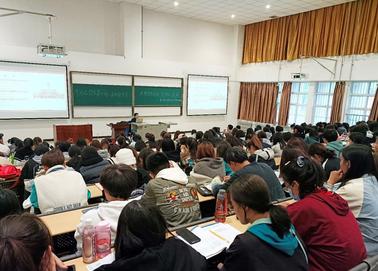 王老師圍繞習近平總書記“七一”重要講話精神,從中國共產黨百年奮斗的光輝歷程、歷史啟示和昂首邁向第二個百年奮斗目標三個方面進行講授。詳細講解了建黨百年來創(chuàng)造的“四個偉大成就”和向世界做出的“四個莊嚴宣告”,著重講解了“偉大建黨精神”的豐富內涵。他指出,中國共產黨的誕生是近代以來歷史的必然選擇,是中國人民和中國國情的必然選擇,也是中華民族的必然選擇。隨后,王老師通過中國共產黨百年奮斗歷史的九個重要啟示,向同學們闡釋了精神建設的重要意義和我們黨的先進性和優(yōu)良傳統(tǒng)。最后,王老師結合自己的親身經歷及訪學見聞,號召同學們:要堅定理想信念,踐行黨的宗旨,以實現(xiàn)中華民族偉大復興為己任,不斷增強、志氣、骨氣、底氣,為黨和國家的發(fā)展做出自己的貢獻。