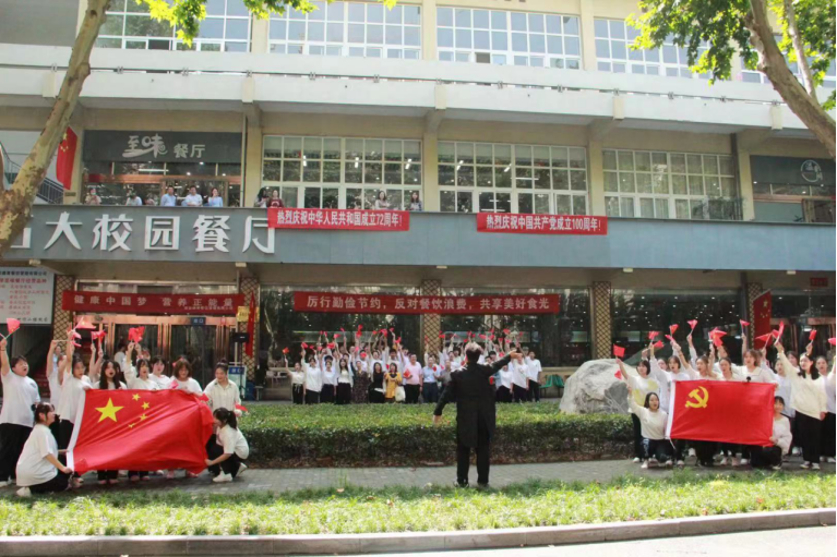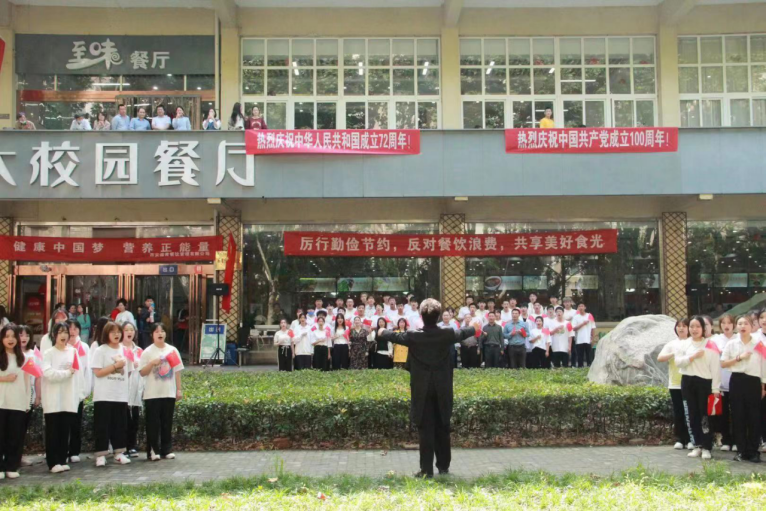 站在“兩個一百年”奮斗目標的歷史交匯點,為慶祝中華人民共和國72歲華誕和建黨100周年,9月30日中午音樂系組織師生在雁塔校區(qū)學生餐廳舉辦“紅歌快閃”活動,吸引了眾多師生觀看,場面熱烈。副校長陳軍斌,紀委、規(guī)劃處、石油工程學院、經濟管理學院、音樂系主要負責人,以及80余名音樂系師生參加了本次“紅歌快閃”活動。該活動由音樂系黨總支策劃,何云、毛楠、朱玥三位老師指導。音樂系已連續(xù)四年五次舉辦“紅歌快閃”活動,唱響主旋律,展現師生良好的精神風貌。
