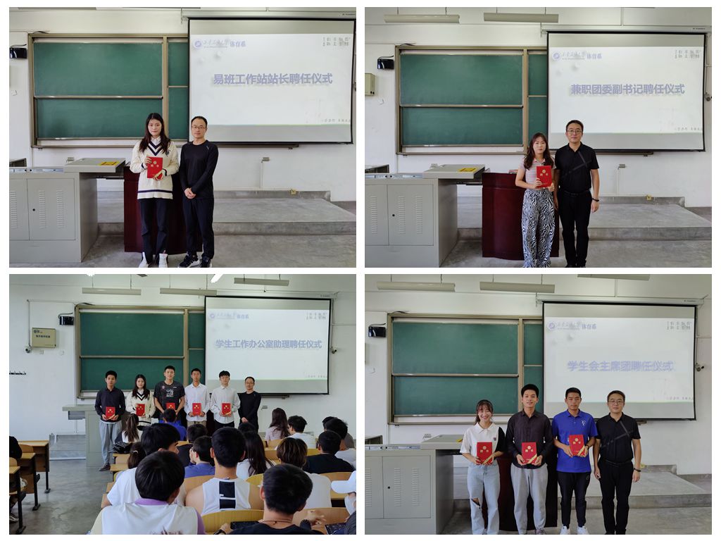 焦老師首先介紹了學(xué)生工作辦公室、系團委、學(xué)生會、易班工作站的概況,肯定了上一屆學(xué)生干部的工作成績,感謝他們?yōu)轶w育系發(fā)展付出的努力,并宣布2021年的聘任名單。隨后,侯老師、焦老師分別為學(xué)生工作辦公室助理、系團委兼職副書記、學(xué)生會主席團成員、易班工作站站長頒發(fā)聘書。焦老師叮囑學(xué)生干部要主動幫助同學(xué)、服務(wù)同學(xué),要注意處理學(xué)習(xí)與工作的關(guān)系,積極開展班級建設(shè),大學(xué)英語四級備考、考研就業(yè)等工作,主動帶動班風(fēng)、學(xué)風(fēng)良好發(fā)展,也希望其他同學(xué)能夠積極配合、盡力協(xié)助學(xué)生干部一同豐富同學(xué)們的校園文化生活。