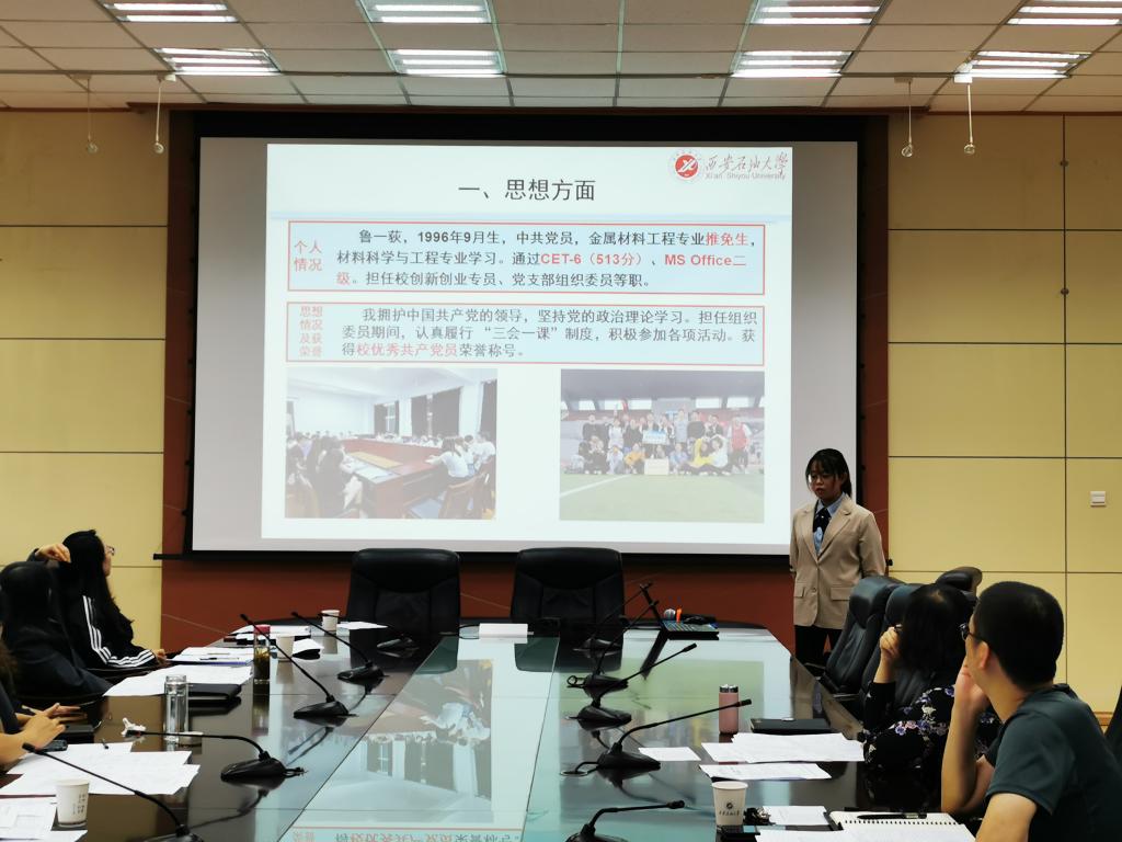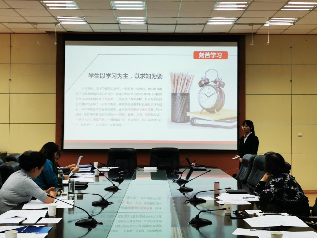 會上,高榮芳部長傳達了本次王濤英才獎學金評選相關要求,并將各院系推薦參與本次答辯研究生情況作了總體介紹。隨后,參評研究生按現(xiàn)場抽簽順序進行答辯。同學們通過精心準備的PPT,從思想政治、學術成果、學習成績、社會實踐、綜合素養(yǎng)等方面展示了自己取得的各項成果。評審委員會通過聽取擬獲獎候選人答辯,對參加答辯的7名“王濤英才”獎學金候選研究生進行了打分排序,最終產生了1名“王濤英才”獎學金擬獲獎學生。
