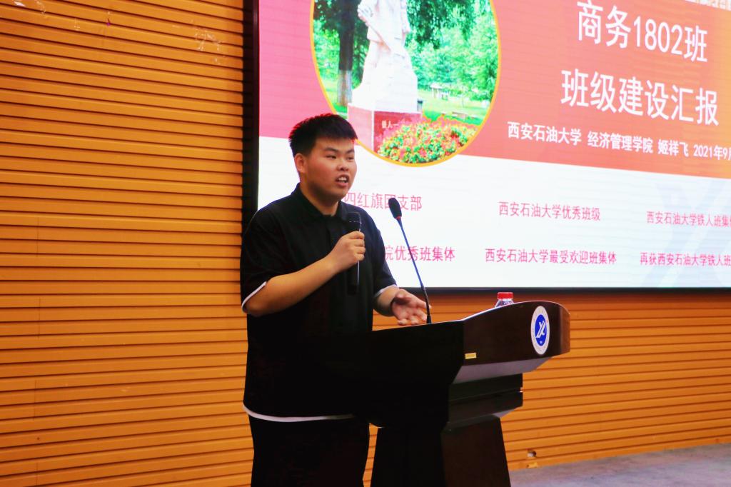 姬祥飛同學分別從班級構成、思想建設、學風建設、所獲成果等多方面全方位闡述了班級概況,展示了一個全面發(fā)展、多元立體的班級建設模式。包括姬同學在內的12位班干部集體協(xié)調一致,帶領全班獲得五四紅旗團支部、西安石油大學鐵人班集體等多項榮譽,彰顯出為建設優(yōu)秀班集體,促進全班同學的自我實現(xiàn)所付出的努力。