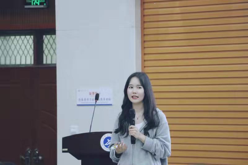 陳佳屏同學則以“青春沒有失敗,努力就在今朝”作為分享主題,以班級建設中的思想、組織、學風、科技文化建設為切入點,主要講解班風班訓文化、班集體榮譽、班級學習成效三方面,著重突出情況與成效、經驗與做法、思考與建議的班級特色文化建設,提出在班級內部要形成“比、學、趕、幫、超”的良好學習氛圍,推動班級建設持續(xù)革新。