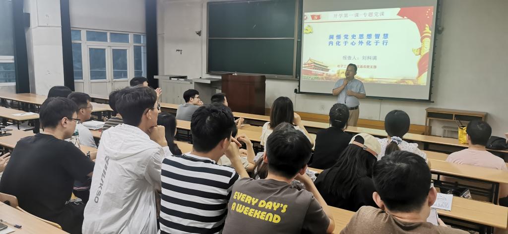 按照我校關(guān)于開學(xué)第一課活動中的相關(guān)要求,電子工程學(xué)院儀器系教工黨支部書記、省級優(yōu)秀共產(chǎn)黨員劉科滿教授分別于20219814:00在鄠邑校區(qū)B121為我院本科生黨員,9919:00在雁塔校區(qū)東階301為研究生黨員講授題為《洞悟黨史思想智慧 內(nèi)化于心外化于行》的專題黨課,本次活動有200余名學(xué)生黨員參加。