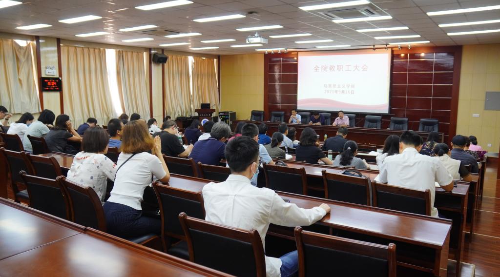 董春詩副書記對(duì)開學(xué)兩周以來思政課教學(xué)工作開展情況做了小結(jié),要求全院教師充分做好教學(xué)準(zhǔn)備、加強(qiáng)課堂管理、維持課堂秩序,確保思政課教學(xué)質(zhì)量。董春詩副書記還通報(bào)了學(xué)校科研工作會(huì)議精神,他講到科研工作是學(xué)科建設(shè)的生命線,對(duì)教師個(gè)人發(fā)展也至關(guān)重要,希望全院教師能加強(qiáng)科研投入,在項(xiàng)目申報(bào)和論文撰寫上下功夫,提升學(xué)院總體科研水平,為學(xué)校建設(shè)高水平大學(xué)助力。