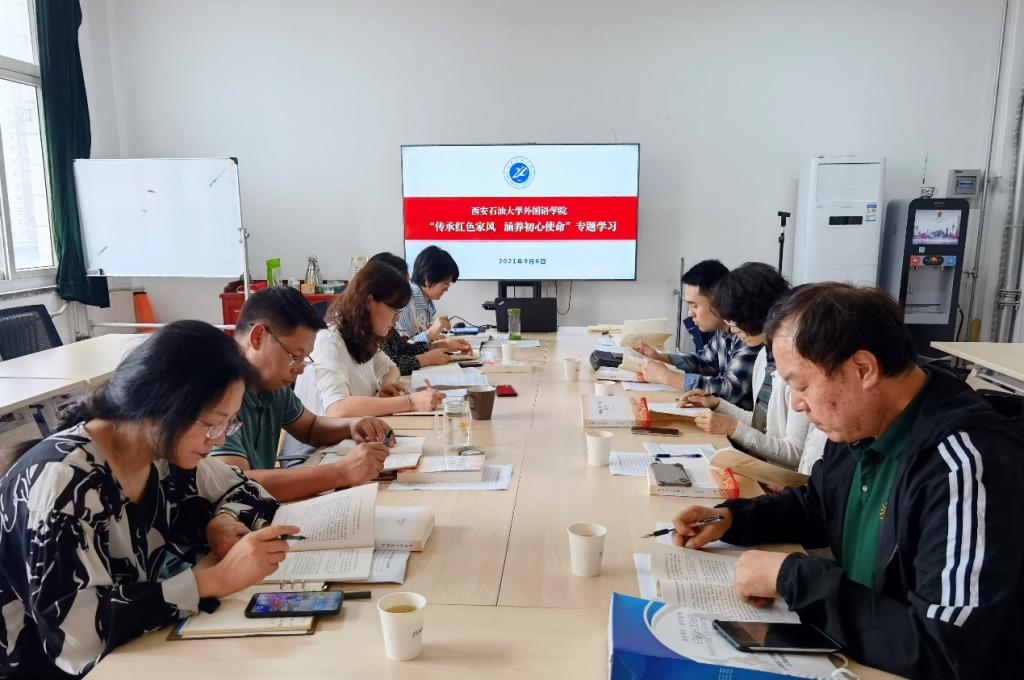 9月6日下午,外國(guó)語(yǔ)學(xué)院黨委理論學(xué)習(xí)中心組在雁塔校區(qū)1號(hào)教學(xué)樓727會(huì)議室召開(kāi)“傳承紅色家風(fēng),涵養(yǎng)初心使命”專題學(xué)習(xí)會(huì)。學(xué)院黨政領(lǐng)導(dǎo)班子、理論中心組成員、教工黨支部書記參加了會(huì)議,會(huì)議由學(xué)院黨委書記田虹霞主持。