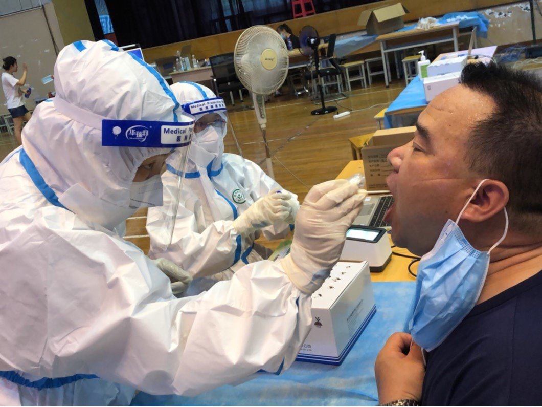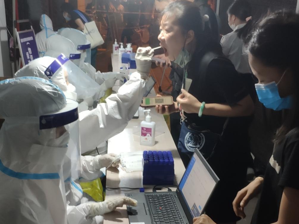 為了做好本次核酸采樣工作,校醫(yī)院積極發(fā)揮黨員的先鋒模范作用,成立了由5個(gè)黨員干部擔(dān)任組長的醫(yī)療小組,從每天早上八點(diǎn)到深夜輪班不間斷地進(jìn)行核酸檢測(cè)采樣工作,做到了無縫銜接。在采樣現(xiàn)場(chǎng),醫(yī)務(wù)人員不畏高溫酷暑和疲勞,雖然工作期間需一直穿著厚重的防護(hù)服,但沒有一人叫苦叫累,更多的是默默地付出與擔(dān)當(dāng),確保了采樣工作的有序地進(jìn)行。我校核酸檢測(cè)采集規(guī)范、樣本質(zhì)量高,得到了轄區(qū)衛(wèi)健部門、街道的高度肯定和好評(píng)。