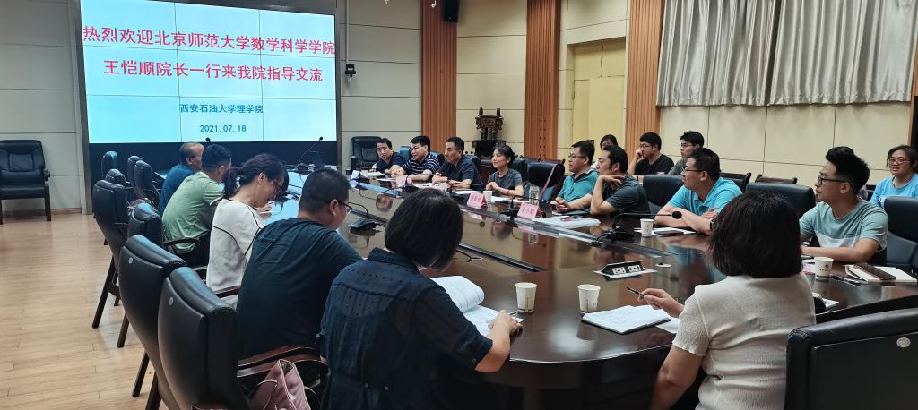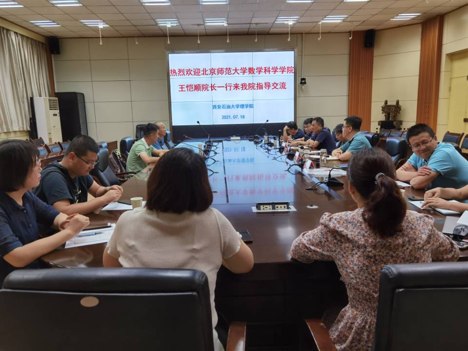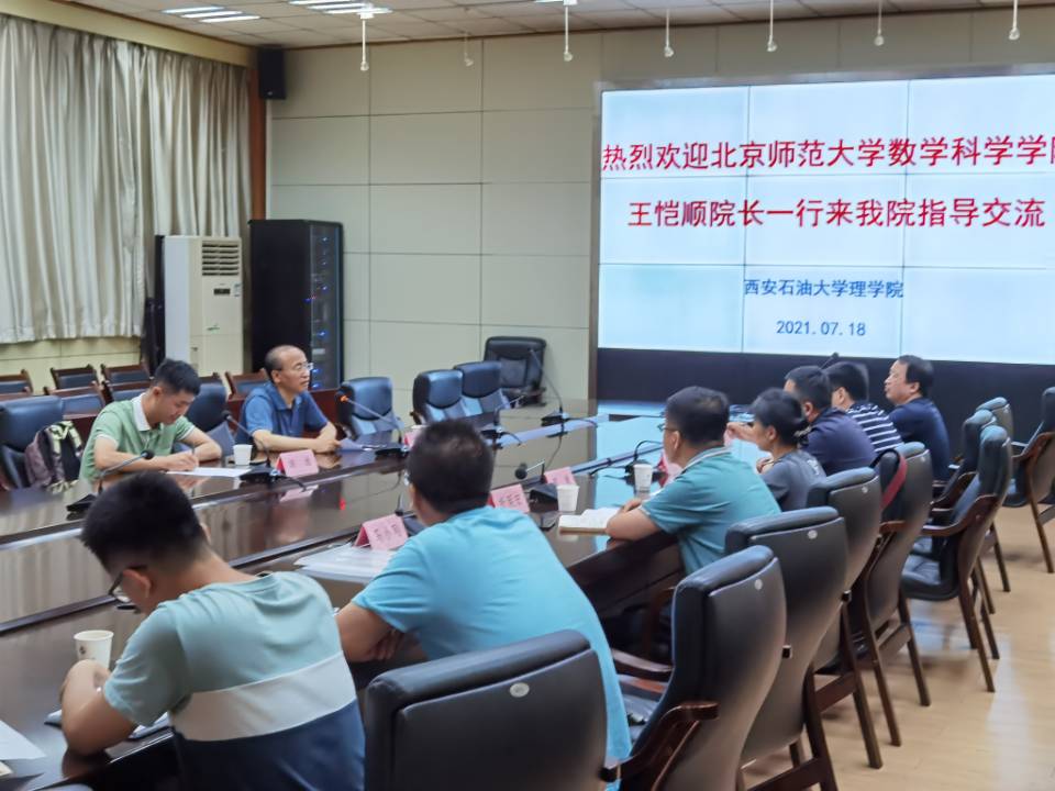 在工作交流環(huán)節(jié),傅海威院長首先介紹了西安石油大學理學院的歷史沿革,學科發(fā)展現(xiàn)狀,師資隊伍建設(shè)現(xiàn)狀,學院機構(gòu)設(shè)置等情況。王愷順院長詳細介紹了北京師范大學數(shù)學科學學院的發(fā)展現(xiàn)狀,本碩博招生規(guī)模,專業(yè)課與公共課教學情況,兩校區(qū)辦學等情況。雙方就數(shù)學學科專業(yè)建設(shè)、人才引進、管理服務(wù)、教師的教學工作量等問題進行了深入的交流。此外,雙方還就理學院“應(yīng)用統(tǒng)計學”專業(yè)學位點建設(shè)、師資隊伍建設(shè)等難點問題進行了深入的分析、交流和探討。
