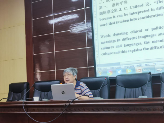 6月28日,應(yīng)外國(guó)語(yǔ)學(xué)院邀請(qǐng),前外交部翻譯室主任徐亞男老師再次為我院師生帶來(lái)一場(chǎng)學(xué)術(shù)報(bào)告,主題為“聯(lián)合國(guó)文件翻譯的特點(diǎn)及技巧”。院長(zhǎng)于艷英、副院長(zhǎng)劉輝、陳武及全體師生參加了講座,講座由劉輝副院長(zhǎng)主持。