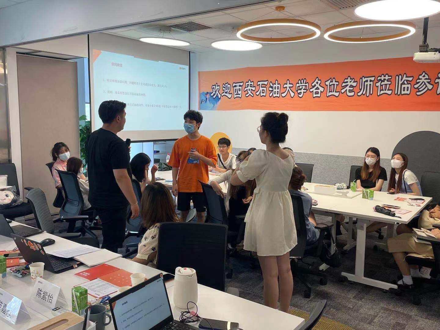 為了提升學生的求職積極性,增加學生對就業(yè)市場的了解,6月28日下午,人文學院黨委副書記盛丹和2018級輔導員范嘉欣老師帶領2018級四十余位來自中文、視覺傳達設計、環(huán)境設計專業(yè)的學生到西安猿輔導公司進行參觀學習。