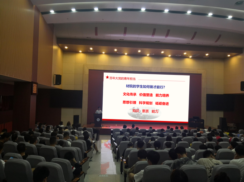 宋海洋首先回顧了中國共產(chǎn)黨建黨的歷史,分析強調同學們要通過黨史學習教育深刻理解中國共產(chǎn)黨為什么“能”,馬克思主義為什么“行”和中國特色社會主義為什么“好”。他從不忘來時路學史正當時,百年大黨的青年擔當,新時代青年的新使命和搭建青年創(chuàng)新平臺助力青年學生成長成才等四個方面展開闡述。報告中,宋海洋通過鮮活的事例和嚴謹?shù)倪壿嫿Y構向同學們說明了歷史的重要性,要求同學們熟知中國共產(chǎn)黨的百年歷程、學校70年的輝煌征程、學院40年的辦學歷史;通過五四運動、陳望道真理的味道非常甜、紅船精神、西遷精神、新時代載人航天精神、偉大的抗疫精神,闡明了百年大黨的青年擔當;通過世界百年未有之大變局、中國2025制造、一帶一路、四次工業(yè)革命、技術封鎖事件、全國本科教育工作會議、全國研究生教育會議、全國職業(yè)教育大會,闡明了新時代青年學生應有的使命和擔當;通過以材物1701拔尖班80%的考研錄取率的人才培養(yǎng)成效和材物1801拔尖班學生在生產(chǎn)實習吃飯休息之余刻苦復習考研的視頻為例,闡明了良好的育人生態(tài)對學生成長成才的重要意義。最后,宋海洋強調,2021年是學院學風建設年,各位學生黨員和入黨積極分子要充分發(fā)揮模范帶頭作用,要成為學院學風建設的示范者、踐行者和引領者,師生協(xié)同提升學院的人才培養(yǎng)質量。