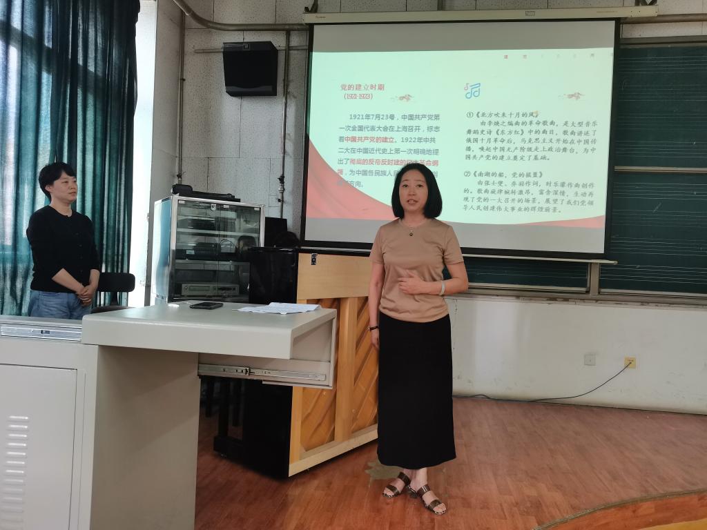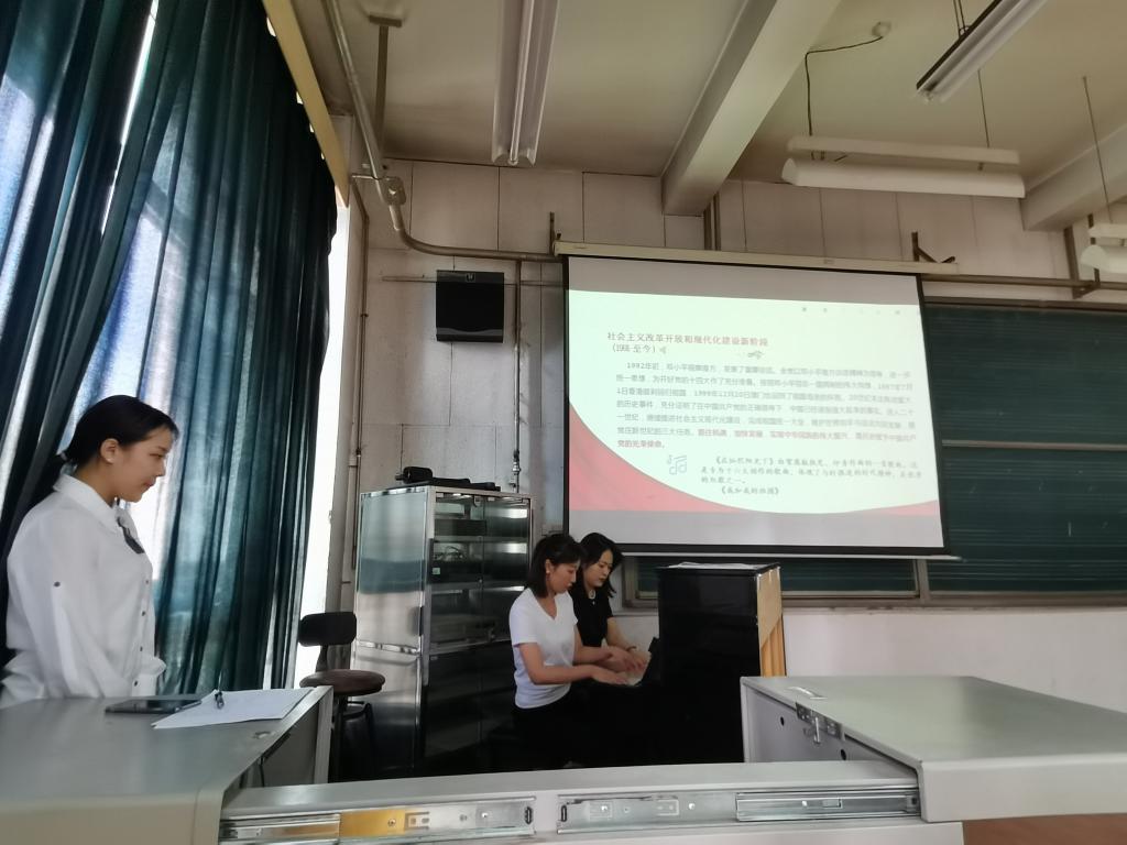 “在1921年中國共產黨成立至今,涌現(xiàn)出了一批內容積極向上、旋律優(yōu)美的紅色歌曲”,兩位支部書記通過朗誦的方式,從不同階段講解了紅色音樂和歌曲的創(chuàng)作背景、歷史意義和傳頌精神。邀請黨員師生現(xiàn)場演唱了《北方吹來十月的風》《南湖的船黨的搖籃》《國民革命歌》《秋收起義歌》《大刀進行曲》《人民解放軍占領南京》《社會主義好》《我們走在大路上》等多首紅色經典歌曲,兩位教工黨員四手聯(lián)彈演繹了《我和我的祖國》等經典曲目,通過“以史串歌,以歌敘史”的形式,將音樂藝術與黨課有機結合,通過音樂的魅力詮釋黨的性質和宗旨,再現(xiàn)黨的奮斗歷程,贊頌黨的輝煌業(yè)績。讓黨員干部們在歌聲中接受了黨史、黨性教育,進一步堅定了理想信念。