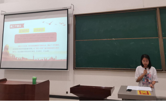 何思怡同學回顧了共產(chǎn)黨百年奮斗的光輝歷程和歷史性貢獻,從什么學習黨史,怎么學習黨史,學好黨史做什么等多個方面來進行宣講。