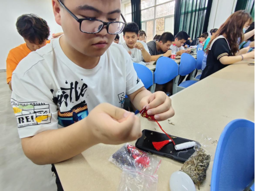 在中國共產(chǎn)黨成立100周年之際,迎來了一年一度的端午節(jié)。為引導學生增強愛國主義情懷,學習端午文化,營造歡樂喜慶的節(jié)日氛圍,6月9日-11日,在端午節(jié)來臨之際,電子工程學院組織學生干部開展“縫香包系彩繩 熱熱鬧鬧話端午”主題活動,學生干部共同體驗手工制作樂趣,將自己的心意滿滿當當?shù)厝M香包,通過為學生系五彩繩傳遞美好祝福。