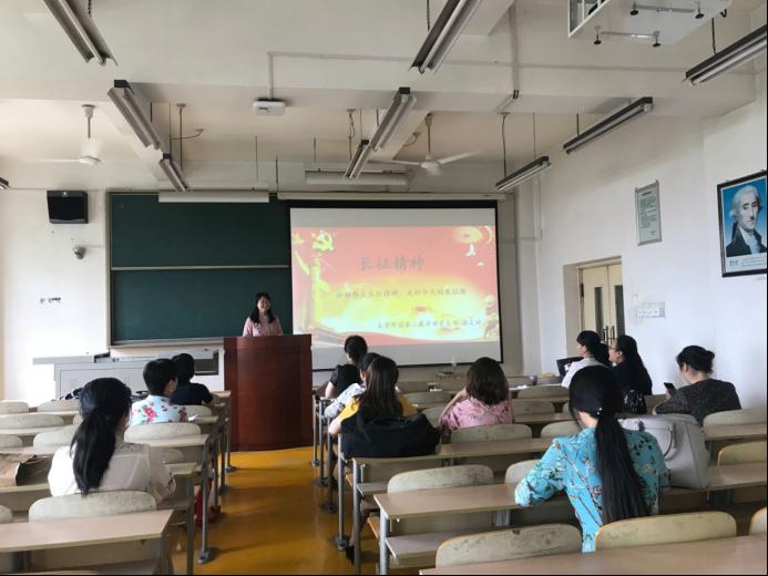 張文婷老師向大家介紹了長征精神的精神內(nèi)涵與重大意義,作為理想信念、檢驗(yàn)真理、喚醒民眾、開創(chuàng)新局的偉大征程,在今天,我們?nèi)孕枥^續(xù)弘揚(yáng)長征精神,走好今天的長征路。胡媛靜老師向大家講述了黨史上《共產(chǎn)黨宣言》第一個(gè)中文全譯本翻譯者陳望道同志的感人事跡。作為著名的語言學(xué)學(xué)者、教育家,陳望道用一生的堅(jiān)守詮釋了馬克思主義真理的力量,他身體力行,在馬克思主義指導(dǎo)下,運(yùn)用古今中外法,為建設(shè)和發(fā)展具有中國特色的文化學(xué)術(shù)而不懈求索。