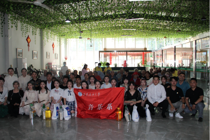 本次活動(dòng)音樂(lè)系為養(yǎng)老院捐贈(zèng)了四袋大米、兩桶油,為公益事業(yè)獻(xiàn)出一片愛(ài)心,充分體現(xiàn)關(guān)愛(ài)老人、尊老愛(ài)幼的傳統(tǒng)美德,發(fā)揮黨員的先鋒模范作用。同時(shí)利用社會(huì)公益平臺(tái)向廣大師生傳遞社會(huì)責(zé)任感,培養(yǎng)和鍛煉學(xué)生們的實(shí)踐表演能力提高演出經(jīng)驗(yàn)。本場(chǎng)演出共10個(gè)節(jié)目,由一曲二胡曲《珊瑚頌》拉開(kāi)了序幕,極具民族特色的音樂(lè),展示出我校大學(xué)生樂(lè)觀積極的人生態(tài)度,老人們聽(tīng)到這美妙的旋律時(shí)不時(shí)的拿手在打節(jié)拍;《竹笛演奏—草原小牧民》《長(zhǎng)笛吹奏—?dú)g樂(lè)頌》《嗩吶表演—好漢歌》,活潑歡快,展示了音樂(lè)學(xué)子精湛的專業(yè)技巧、高超的舞臺(tái)表現(xiàn)力;歌曲《我和我的祖國(guó)》《典獄司》《父親》都彰顯著愛(ài)國(guó)、經(jīng)典京劇的傳承與傳統(tǒng)美德,最后一首《父親》,令在場(chǎng)的人們熱淚盈眶。