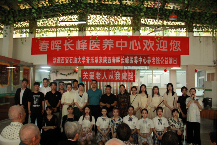 5月28日,音樂(lè)系組織學(xué)生黨員赴春暉長(zhǎng)峰醫(yī)養(yǎng)中心養(yǎng)老院進(jìn)行進(jìn)社區(qū)公益演出。本場(chǎng)演出由何云老師精心編排,相關(guān)專業(yè)老師精心指導(dǎo)學(xué)生排練演出節(jié)目,經(jīng)過(guò)師生聯(lián)手演繹,為春暉長(zhǎng)峰養(yǎng)老院的老人們呈現(xiàn)了一場(chǎng)繽紛多彩的公益演出。音樂(lè)系黨總支書(shū)記孟開(kāi)元,教工黨員代表5人參加了本次公益活動(dòng)。