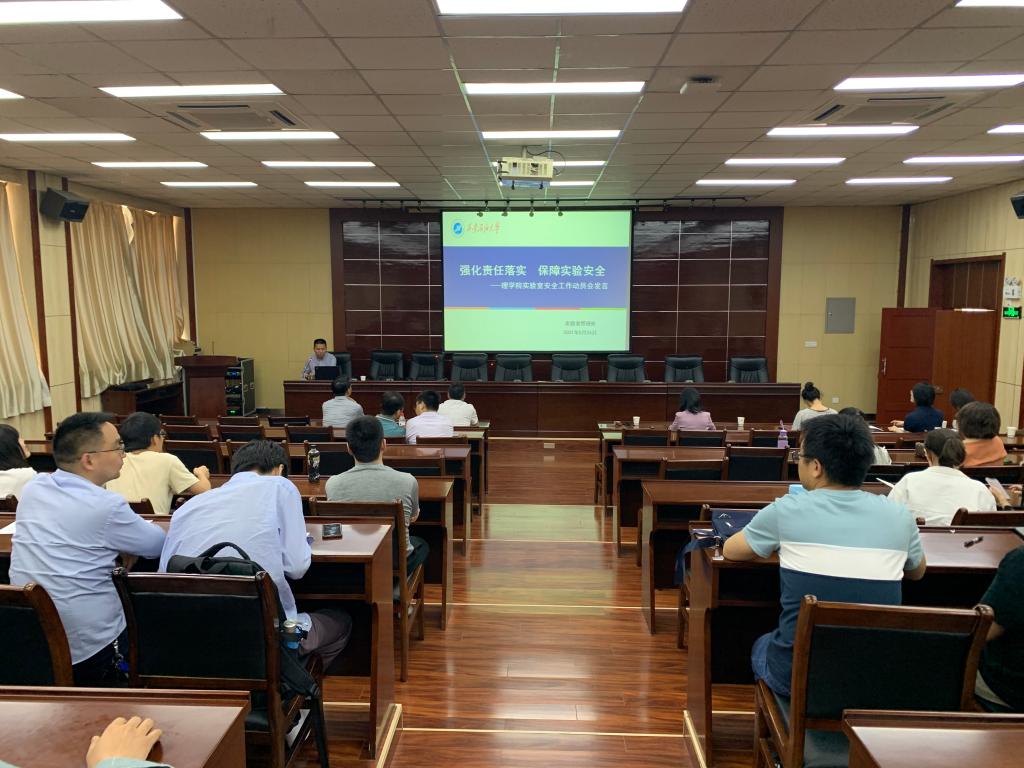 2021526下午4:30,理學(xué)院邀請實驗室管理處李慶本副處長進行了“強化責(zé)任落實 保障實驗安全”的安全工作動員會。全院100余名教職工參加本次會議,廖敏書記主持會議。