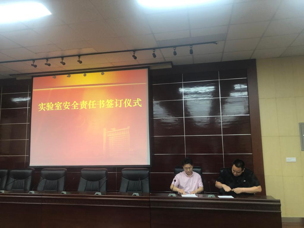 會議第一階段進行實驗室安全檢查動員及部署。首先由實驗管理處副處長李慶本傳達了教育部和陜西省教育廳《關(guān)于組織開展2021年度高等學(xué)校實驗室安全檢查工作的通知》,李慶本副處長從近年來國內(nèi)影響重大的化工類安全事故出發(fā),指出做好實驗室安全工作應(yīng)該作為學(xué)院每位教師的基礎(chǔ)性和日常性工作,并對照中省有關(guān)實驗室安全文件精神要求,指出學(xué)院實驗室目前存在的管理漏洞和安全問題,希望各實驗室負責(zé)老師認清責(zé)任,狠抓落實,把實驗室安全事故扼殺在萌芽狀態(tài)。李善建副院長介紹了學(xué)院落實實驗室安全工作的具體措施:一是高度重視實驗室安全工作,切實加強組織領(lǐng)導(dǎo);二是簽訂安全責(zé)任書、逐級分層落實安全責(zé)任;三是嚴格落實實驗室安全準(zhǔn)入制度,確保實驗室安全運行;四是認真開展自查自糾,扎實做好排查整改工作;五是強化制度執(zhí)行,嚴肅責(zé)任追究。會上,由現(xiàn)代分析檢測中心主任賈新剛老師和化學(xué)化工實驗教學(xué)中心主任張新強老師分別代表科研實驗室和教學(xué)實驗室與分管領(lǐng)導(dǎo)簽訂了《化學(xué)化工學(xué)院實驗室安全責(zé)任書》。