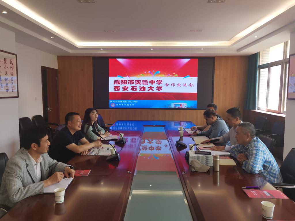 韓望校長對我校一行的來訪表示熱烈的歡迎和衷心的感謝,并詳細(xì)介紹了咸陽實(shí)驗(yàn)中學(xué)的發(fā)展歷程、辦學(xué)特色和教學(xué)成果,咸陽市實(shí)驗(yàn)中學(xué)是咸陽市教育局直屬的重點(diǎn)中學(xué),全校共有教職工480余名,學(xué)生6000余人,目前以高中部為主,每年高考一本上線率都能達(dá)到90%以上。韓校長表示,希望兩校以后能夠保持常態(tài)化的對接與合作,除招生宣傳外,還能夠在學(xué)生生涯規(guī)劃、研學(xué)活動(dòng)、心理輔導(dǎo)、教師培訓(xùn)等方面進(jìn)行進(jìn)一步的合作,同時(shí)歡迎西安石油大學(xué)到校開辦招生宣講會(huì)。