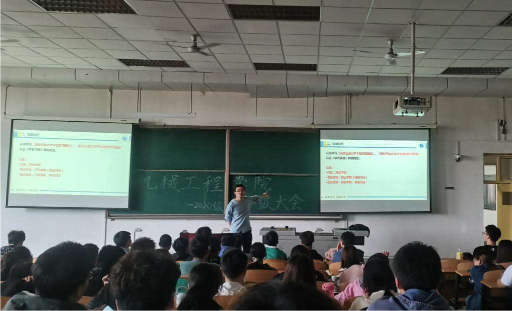 根據(jù)學(xué)校進(jìn)一步嚴(yán)肅校規(guī)校紀(jì)加強(qiáng)學(xué)生教育管理專項(xiàng)教育的統(tǒng)一安排,機(jī)械工程學(xué)院于4月19日起陸續(xù)召開學(xué)生工作例會(huì)、線上線下結(jié)合的各級(jí)年級(jí)大會(huì)、各班班會(huì)、學(xué)生干部會(huì)議,認(rèn)真學(xué)習(xí)《學(xué)生手冊(cè)》中《西安石油大學(xué)學(xué)生管理規(guī)定》、《西安石油大學(xué)學(xué)生違紀(jì)處分規(guī)定》等學(xué)生管理內(nèi)容,并進(jìn)行校運(yùn)動(dòng)會(huì)、“五一”假期等安全紀(jì)律教育,同時(shí)安排各年級(jí)的重要事項(xiàng)。各年級(jí)輔導(dǎo)員主持相關(guān)會(huì)議。
