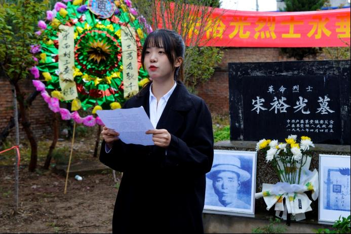 學(xué)生黨員龐詩凡代表全體黨員在烈士墓前致悼詞,先烈雖逝,精神永存,深切緬懷革命先烈,向他們心懷家國、犧牲自我的革命精神致敬。她表示,新時(shí)代的學(xué)生黨員一定會(huì)繼承革命先烈的遺志,崇尚烈士、捍衛(wèi)烈士、學(xué)習(xí)烈士,以習(xí)近平新時(shí)代中國特色社會(huì)主義思想為指引,在學(xué)習(xí)中爭當(dāng)優(yōu)秀,在行動(dòng)中堅(jiān)守共產(chǎn)黨員的初心和使命。