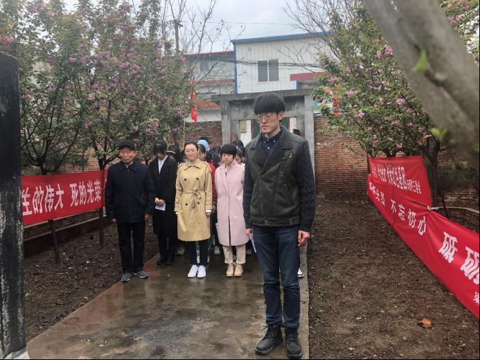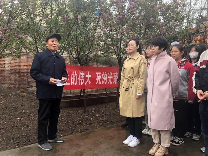 祭掃活動(dòng)中,學(xué)生邁著整齊的步伐,莊嚴(yán)的向宋裕光烈士敬獻(xiàn)了花圈,全體師生在烈士墓前默哀悼念,深切緬懷宋裕光烈士。隨后,邀請(qǐng)烈士陵園的志愿者溫老先生給同學(xué)們介紹了宋裕光烈士的生平事跡。溫老師用飽含深情的話語講述了宋裕光同志組織戶縣地下黨開展打富濟(jì)貧和抗糧抗捐等不屈斗爭歷史,講述了他被內(nèi)奸出賣被捕受到的嚴(yán)刑拷打而英勇犧牲的壯烈事跡。他希望年輕學(xué)生要堅(jiān)定信念跟黨走,牢記國家振興民族復(fù)興為己任的共產(chǎn)黨人初心和使命。同學(xué)們認(rèn)真聆聽,仿佛回到了那個(gè)三座大山壓迫著中國人民,中華兒女為爭取和平而拋頭顱灑熱血的三十年代,在心中向無數(shù)宋裕光烈士一樣的共產(chǎn)黨員和仁人志士致以最崇高的敬意!