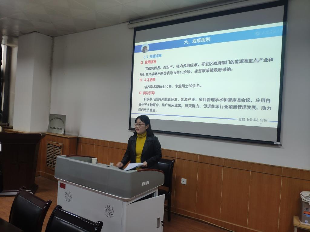 會上,楊睿娟教授根據(jù)陜西高校新型智庫建設任務書對智庫預期目標作了簡要介紹,并就前期智庫答辯情況及下一步工作推進計劃進行了解讀。她提出,平臺建設要從三個方面出發(fā)予以加強,一是加強與政府的聯(lián)系,跟蹤國內(nèi)外能源行業(yè)的發(fā)展動態(tài),為能源產(chǎn)業(yè)發(fā)展咨政建言獻策;二是加強與企業(yè)的合作,特別是與陜煤、長慶等地方能源企業(yè)的橫向項目合作,解決陜西能源企業(yè)發(fā)展中的實際問題;三是加強人才培養(yǎng)、學科發(fā)展和學術研究工作,形成人才培養(yǎng)質(zhì)量提升、學科科學有序發(fā)展、學術研究提質(zhì)增效的良好局面。