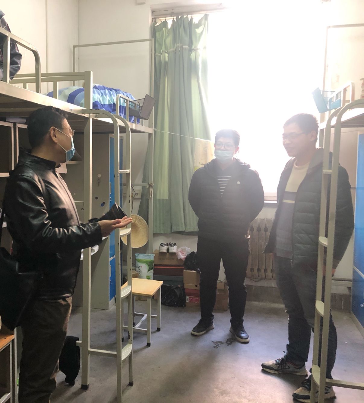 2021年2月1日中午12:00,地球科學與工程學院黨委書記馬行天、黨委副書記王瑩、研18級輔導員楊飛龍和研19、20級輔導員張陽深入學生宿舍,走訪慰問了學院寒假留校的研究生。