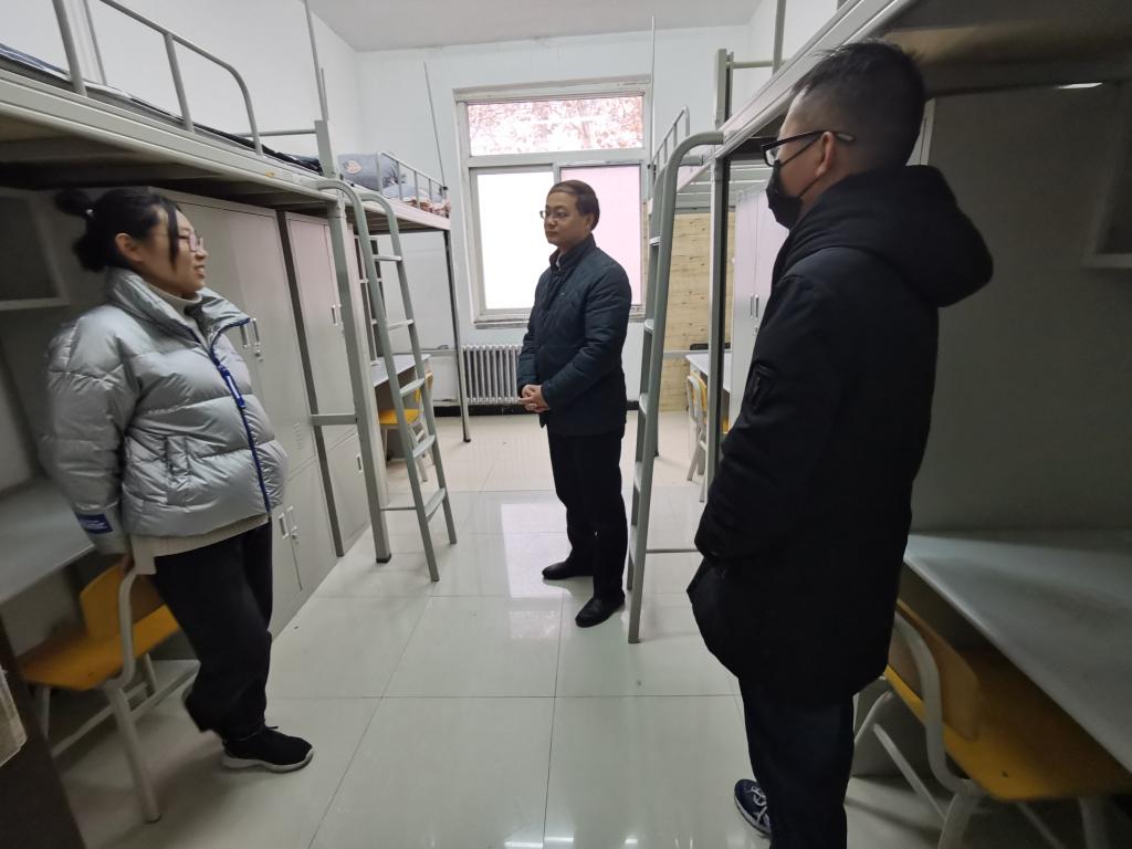 1月25日上午,計算機(jī)學(xué)院黨委書記李強(qiáng)、學(xué)工辦主任王軍策、碩士生導(dǎo)師潘少偉前往學(xué)生宿舍走訪慰問學(xué)院研一留校學(xué)生馬金采,了解其因疫情影響留校期間的實(shí)際需求,并有針對性地給予指導(dǎo)和幫助,送去學(xué)院的慰問和關(guān)懷。
