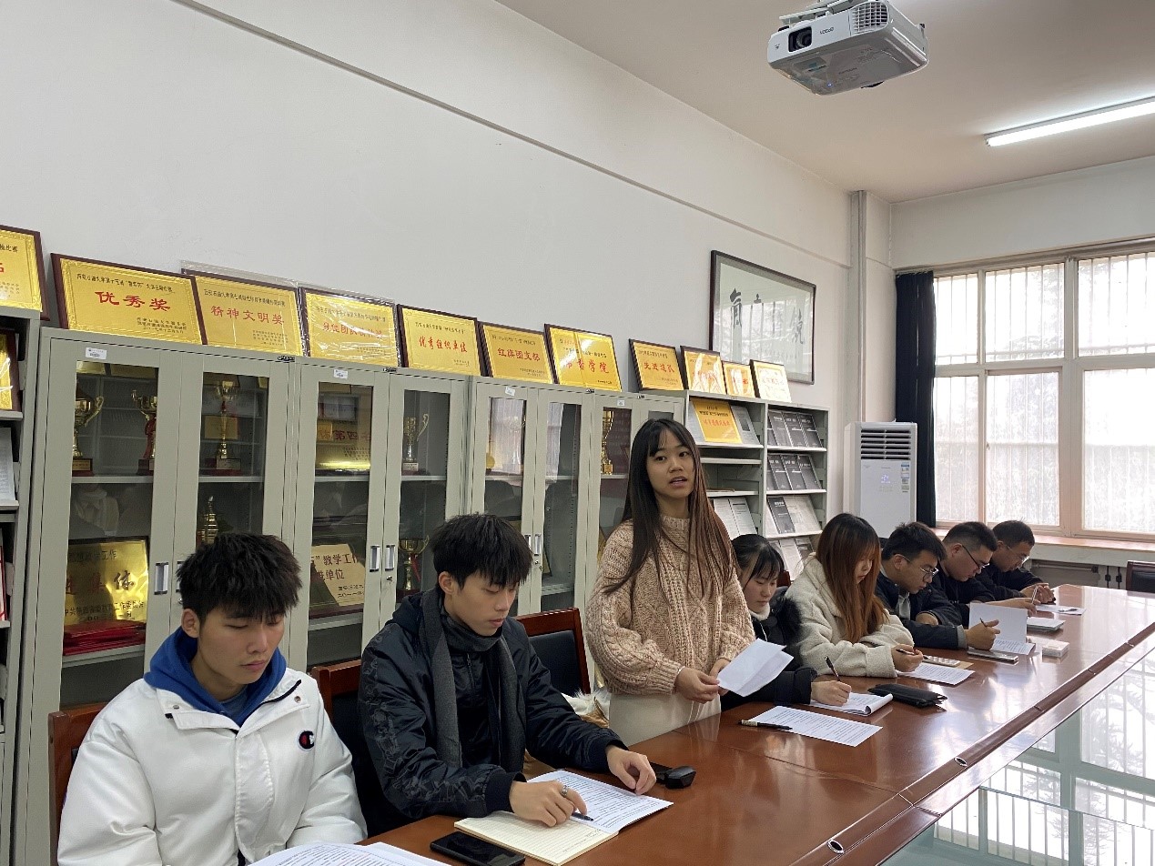 在第三環(huán)節(jié)中,馬老師對(duì)大家的發(fā)言進(jìn)行了總結(jié),對(duì)其中的亮點(diǎn)和特色進(jìn)行了表揚(yáng),對(duì)其中的短板和不足提出了建議,并幫大家分析了就業(yè)與考研形勢(shì),對(duì)每個(gè)年級(jí)、每個(gè)班考研人數(shù)進(jìn)行了摸排。