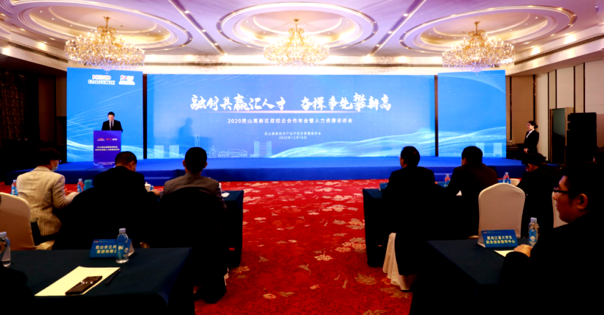 1218日上午,“2020年昆山高新區(qū)政校企合作年會(huì)暨人力資源洽談會(huì)”在昆山皇冠酒店召開,昆山高新區(qū)黨工委副書記、管委會(huì)副主任張建文,昆山市人力資源和社會(huì)保障局黨委書記、局長(zhǎng)何智勇,黑龍江省教育廳副廳長(zhǎng)姜同河分別致辭。