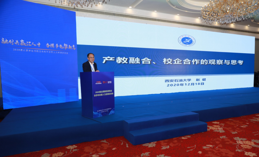 我校學(xué)生工作部部長(zhǎng)、就業(yè)指導(dǎo)中心主任趙健應(yīng)邀在會(huì)上做了《產(chǎn)教融合、校企合作的觀察與思考》的主題演講。他圍繞“十三五”期間我國產(chǎn)教融合、校企合作的發(fā)展態(tài)勢(shì),總結(jié)回顧了我國產(chǎn)教融合政策體系構(gòu)建、普通高等教育和職業(yè)教育的發(fā)展、產(chǎn)教融合和校企合作方面的亮點(diǎn),結(jié)合地方本科院校的定位于特點(diǎn),分析了現(xiàn)階段產(chǎn)教融合領(lǐng)域存在的薄弱環(huán)節(jié),提出了“十四五”期間政府、高校、企業(yè)深化產(chǎn)教融合,構(gòu)建協(xié)同育人網(wǎng)絡(luò)體系的對(duì)策建議,并簡(jiǎn)要介紹了我校發(fā)展建設(shè)概況和畢業(yè)生就業(yè)工作,對(duì)我校2021屆畢業(yè)生進(jìn)行了現(xiàn)場(chǎng)推介。主旨報(bào)告受到了與會(huì)代表的一致好評(píng)。