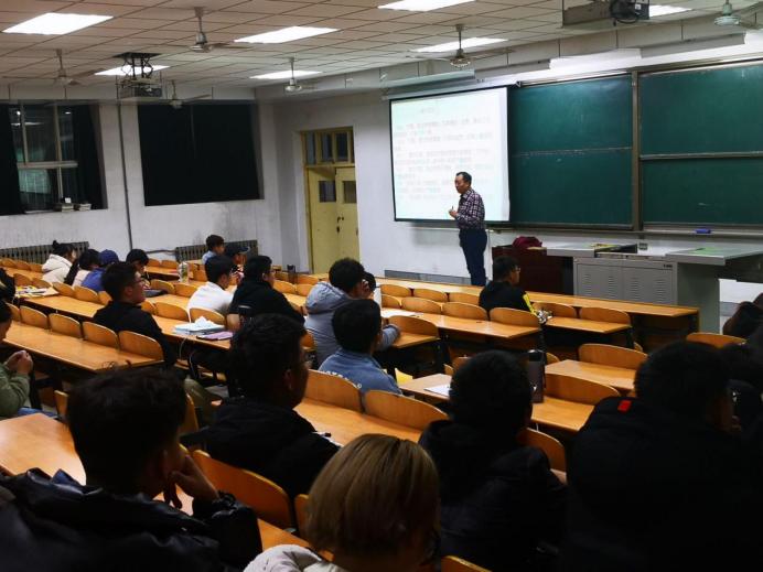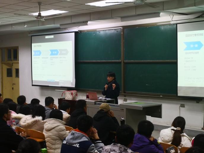 講座中,教師結合實例將學生們的熱情充分調動起來,從專業(yè)角度對英語的學習方法進行整合歸納講解。同學們積極發(fā)言,現(xiàn)場氣氛活躍。講座臨近結束時,學生們就他們在備考四級考試過程中碰到的困惑與問題與主講教師進行了簡單但富有成效的交流。