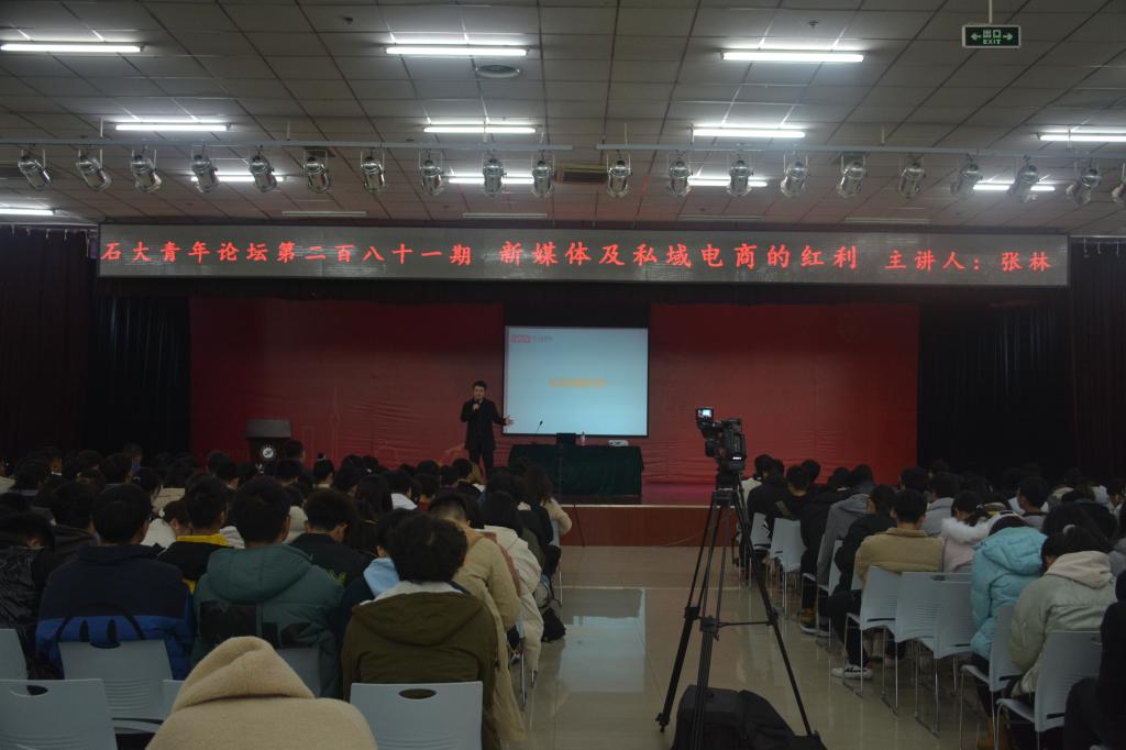 12月1日晚,由校團委主辦、計算機學院承辦的第281期石大青年論壇在鄠邑校區(qū)騰輝大學生活動中心舉辦,本期論壇邀請到計算機學院優(yōu)秀校友、西安美人魚互聯(lián)網(wǎng)產(chǎn)業(yè)有限公司總經(jīng)理張林作題為“新媒體及私域電商的紅利”的主題報告,計算機學院2020級輔導員劉亭普及學院400余名學生參加。