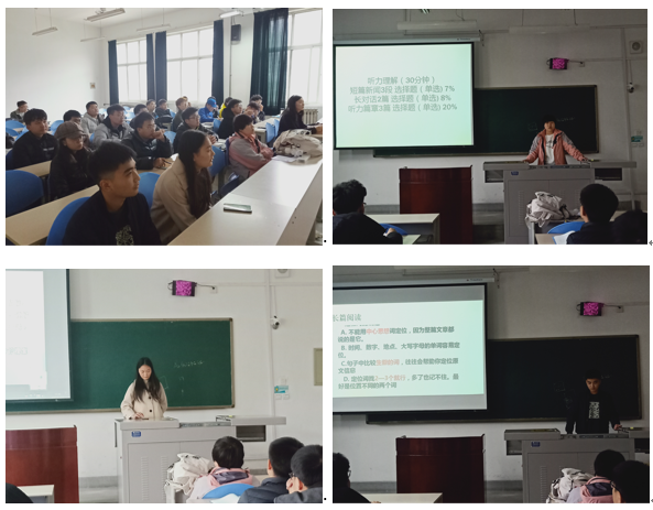 本次四級微講座活動是地球科學與工程學院2018級四級強化工作系列舉措之一,旨在幫助學生明確學習目的,端正學習態(tài)度,增強學習動力,提高英語學習成績。
