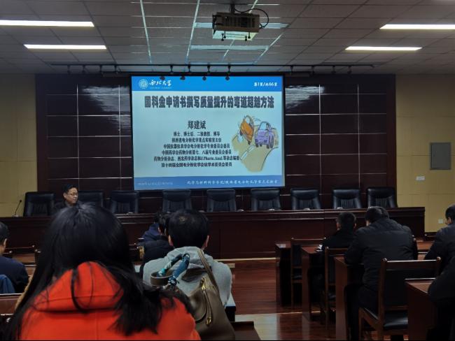 鄭建斌教授在長(zhǎng)達(dá)兩個(gè)半小時(shí)的報(bào)告中,結(jié)合自己成功申請(qǐng)國(guó)家自然科學(xué)基金方面的心得與感悟,詳細(xì)介紹了國(guó)科金申請(qǐng)書撰寫質(zhì)量提升的拐彎超越方法,提出了通過對(duì)項(xiàng)目指令中“題目、內(nèi)容、目標(biāo)、創(chuàng)新”等關(guān)鍵詞的理解及常規(guī)邏輯等其他常識(shí)的運(yùn)用,學(xué)習(xí)國(guó)家自然科學(xué)基金和社會(huì)科學(xué)基金申請(qǐng)書的撰寫的新方法。鄭教授的報(bào)告生動(dòng)有趣,語言幽默,講解深入淺出,使與會(huì)老師們受益匪淺。鄭教授希望大家在后續(xù)的申報(bào)書寫作方面常和他聯(lián)系,相互學(xué)習(xí),共同提高。