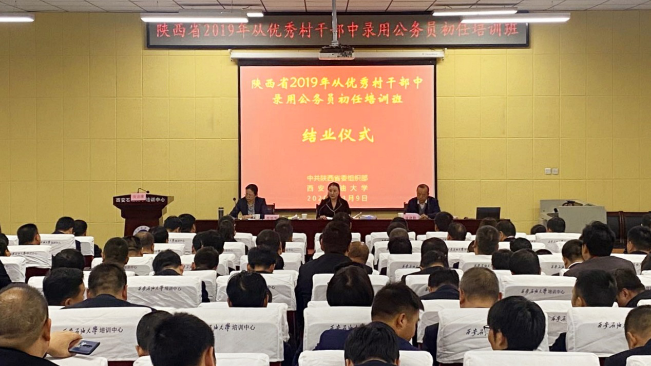 10月29日至11月9日,由中共陜西省委組織部主辦、陜西省干部教育培訓西安石油大學基地承辦的陜西省2019年從優(yōu)秀村干部中錄用公務(wù)員初任培訓班在我校明德校區(qū)成功舉辦。